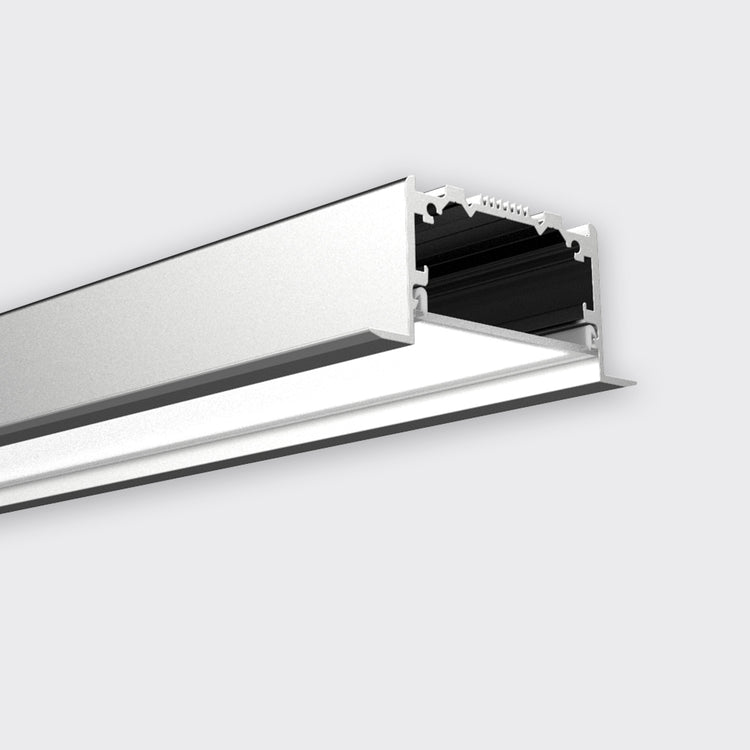 HIGHLINE 03 is a large scale, recessed profile with a stylish trim that allows for a forgiving installation and ensures a clean finish. Highline 03 features a recessed opal diffuser.
